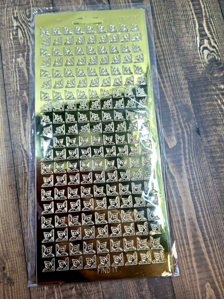 Stickerbogen "Kleine Ecken - gold, metallic".Sehr gute Haftkraft. Auch auf Wachs