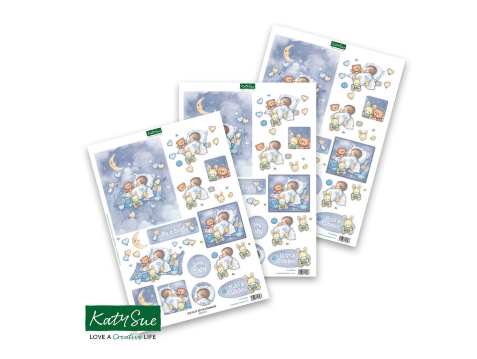 Katy Sue Design "Baby Boy and Moon" Stanzteile, 3x A4 Bögen, 150gr