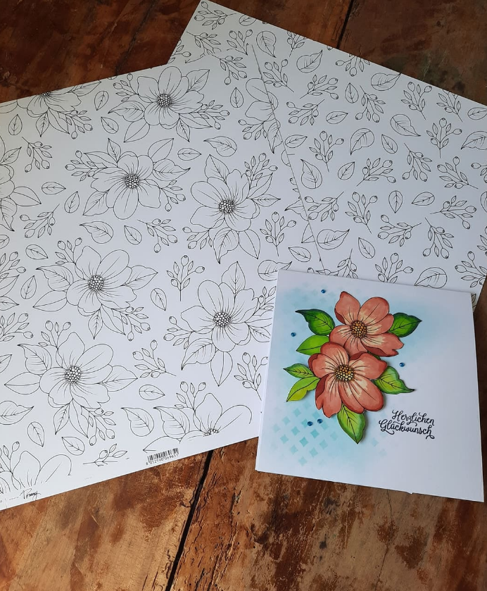 Ausmalbogen Anemone, von Moda Scrap. 30,5x30,5cm. Beidseitig bedruckt