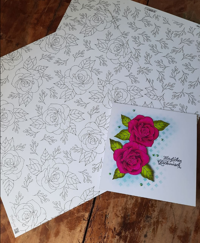 Ausmalbogen Rose von Moda Scrap. 12x12". Beidseitig bedruckt. 250gr