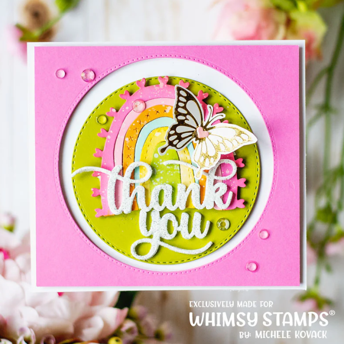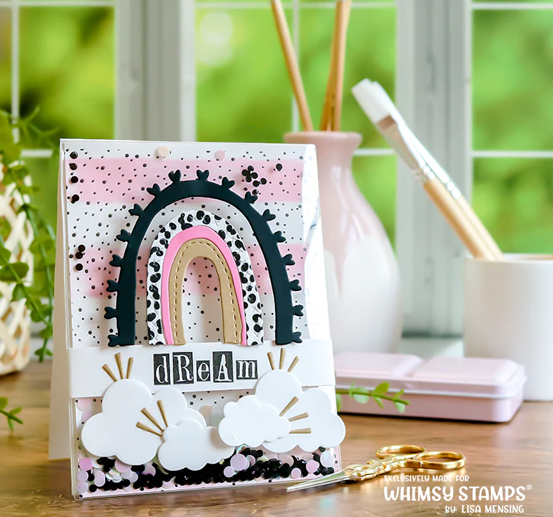 Stanzschablonenset "Boho Rainbows" von Whimsy Stamps. Größe Regenbogen mit Herzen: 7,9x7cm. Zur Anwendung ist eine gängige Stanz.-und Prägemaschine erforderlich, wie z.Bsp. Big Shot A5. Vor Kleinkindern unerreichbar aufbewahren.