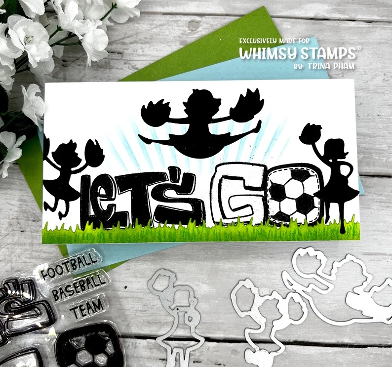 Stanzschablonenset "Cheer Leader" von Whimsy Stamps. Größe des Mädchens - Spagat: 6,5x3,8cm. Zur Anwendung ist eine gängige Stanz.-und Prägemaschine erforderlich, wie z.Bsp. Big Shot A5. Vor Kleinkindern unerreichbar aufbewahren.