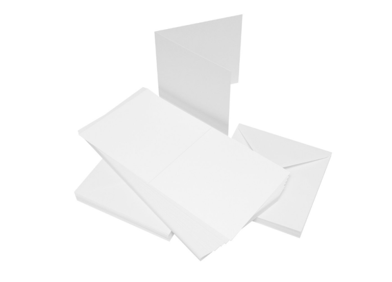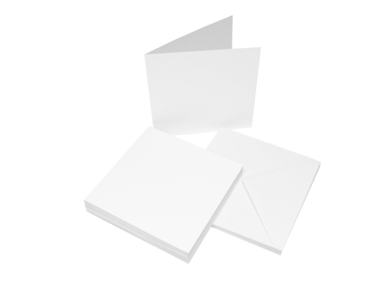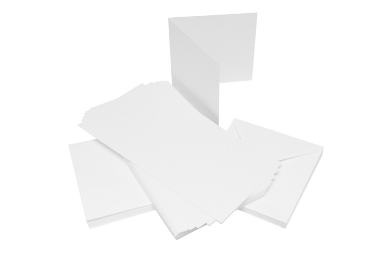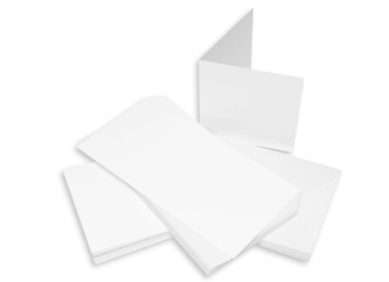 15x15cm - 50 Stk Karten + 50 Stk Kuverts, glatt weiß, CUK