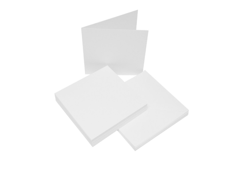 10x10cm - 50 Stk Karten + 50 Stk Kuverts, glatt weiß, CUK