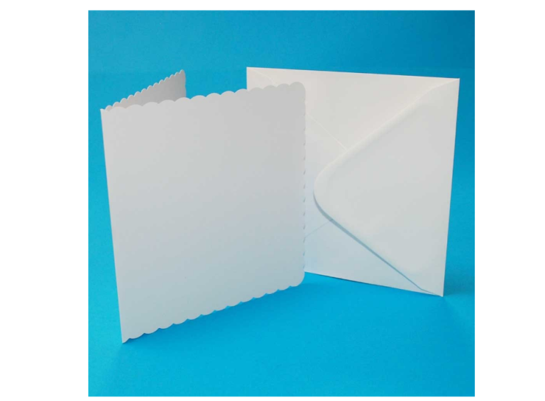 15x15cm - 50 Stk Karten + 50 Stk Kuverts, scalloped glatt weiß, CUK