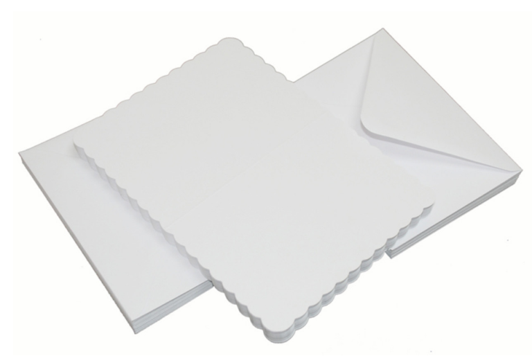 12,7x17,8cm - 50 Stk Karten + 50 Stk Kuverts, scalloped glatt weiß, CUK