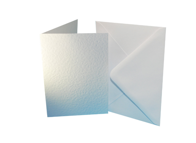A6 - 50 Stk Karten + 50 Stk Kuverts, gehämmert weiß, CUK