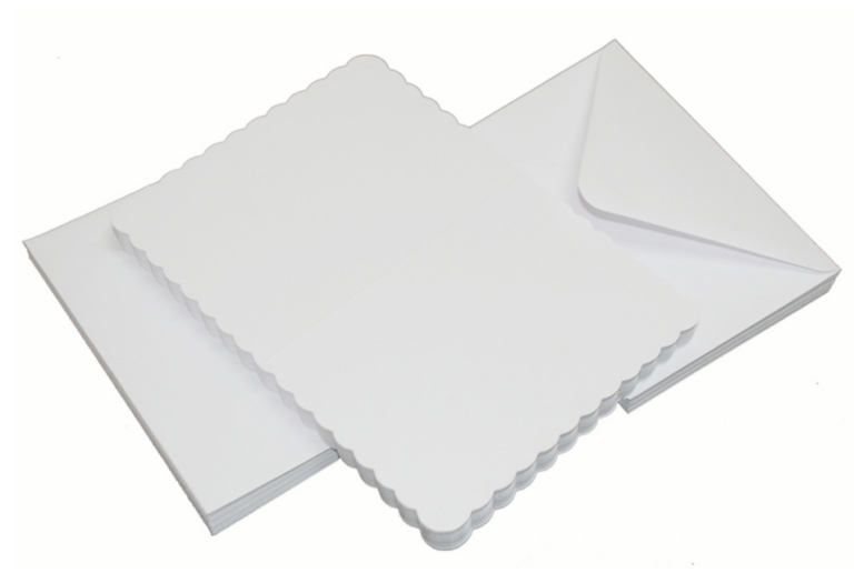 A6 - 50 Stk Karten + 50 Stk Kuverts, scalloped glatt weiß, CUK