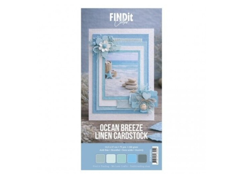 13,5x27cm "Ocean Breeze", 75 Blatt Linen Cardstock, 225-240gr, Find It Trading