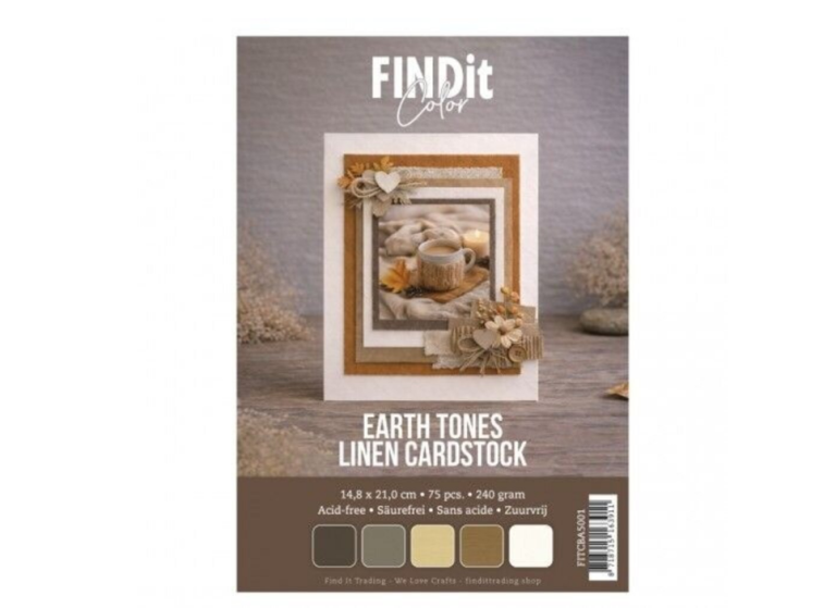 A5 "Earth Tones" 75 Blatt Linen Cardstock, 225-240gr, Find It Trading