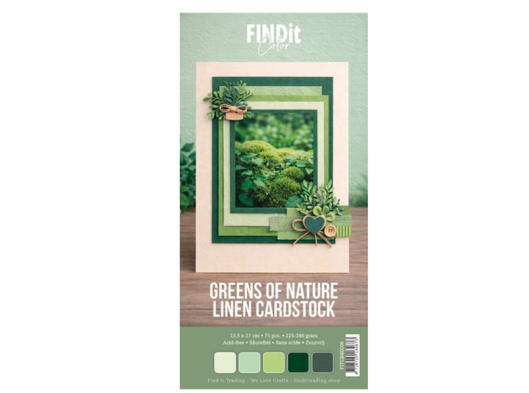 A5 "Green of Nature", 75 Blatt Linen Cardstock, 225-240gr, Find It Trading