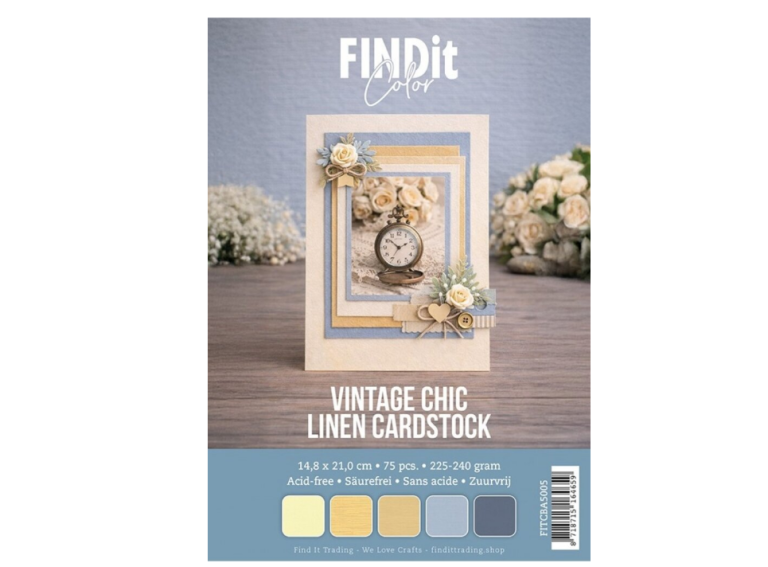 A5 "Vintage Chic", 75 Blatt Linen Cardstock, 225-240gr, Find It Trading
