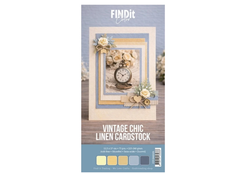 13,5x27cm "Vintage Chic" 75 Blatt Linen Cardstock, 225-240gr, Find It Trading
