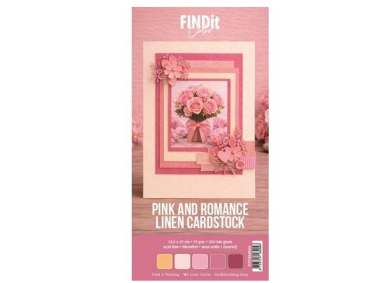 13,5x27cm "Pink Romance", 75 Blatt Linen Cardstock, 225-240gr, Find It Trading