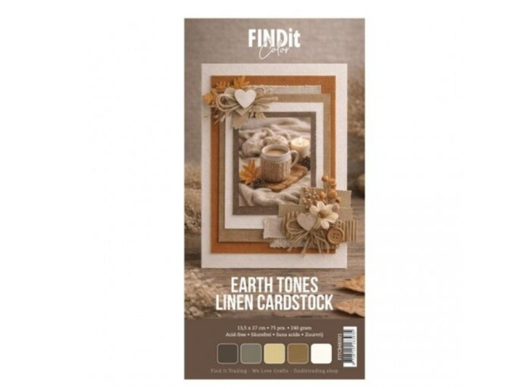13,5x27cm "Earth Tones", 75 Blatt Linen Cardstock, 225-240gr, Find It Trading
