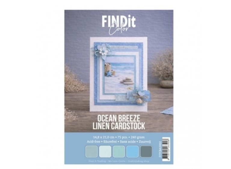 A5 "Ocean Breeze", 75 Blatt Linen Cardstock, 225-240gr, Find It Trading